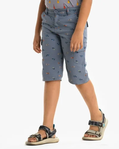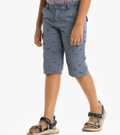 Blue Cotton Three Quarter Kids Pants For 2-11 Years Old Kids