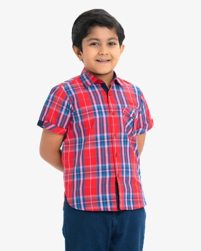 Check Cotton Short Sleeve Casual Shirt for 2-11 Years old Kids