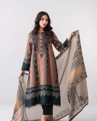 Relaxed Fit Embroidered Three-Piece Formal Lawn