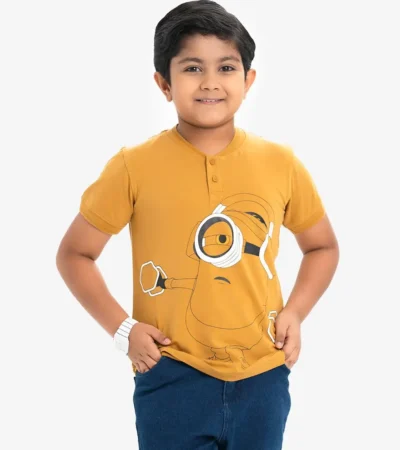 Yellow Cotton Henley T-Shirt for 2-11 Years old Kids