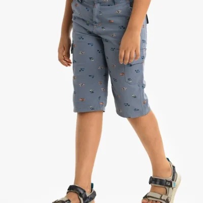 Kid boys’ Henley T-shirt in cotton stretched fabric. Henley neck with front button fastening and short sleeves. Cartoon print on the front.
